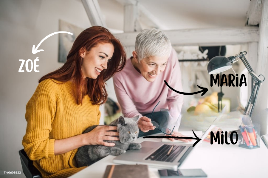 Puis Zach (et son chat Django) nous a rejoints, apportant son expertise pour transformer nos idées en produits concrets. Aujourd’hui, c’est avec Milo, notre nouveau chat, que nous poursuivons cette mission.